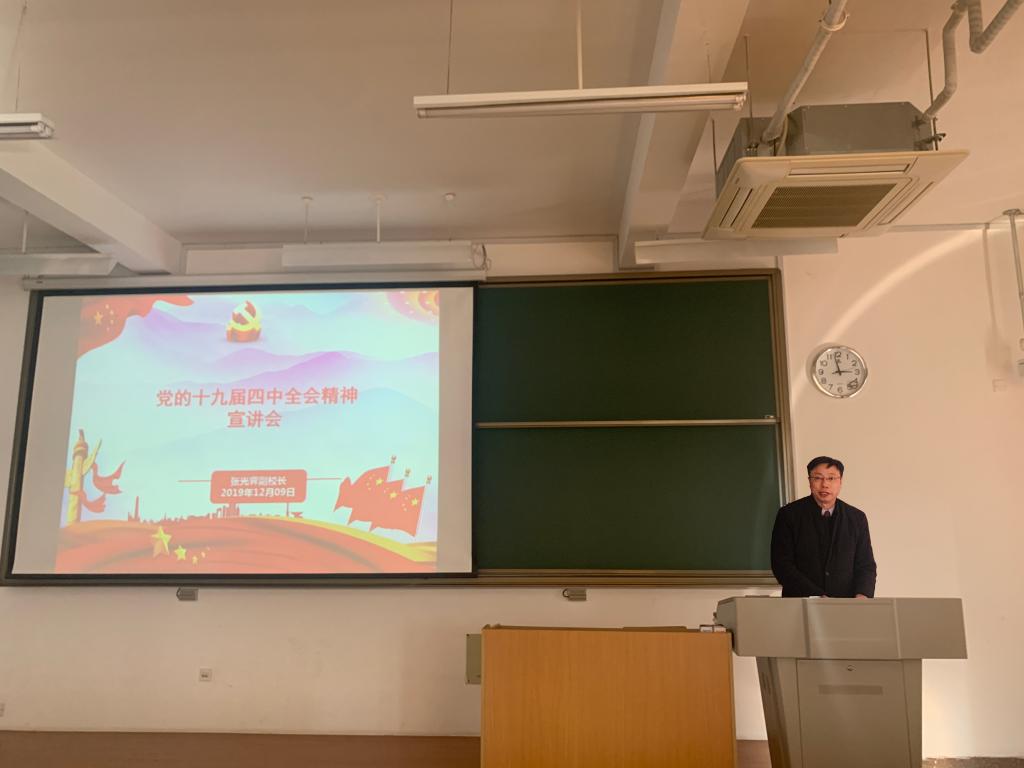 12月9日下午,公司党委委员、副董事长张光霁为永利3044集团官网教职工进行党的十九届四中全会精神宣讲,报告会由永利3044集团官网经理秦路平主持。