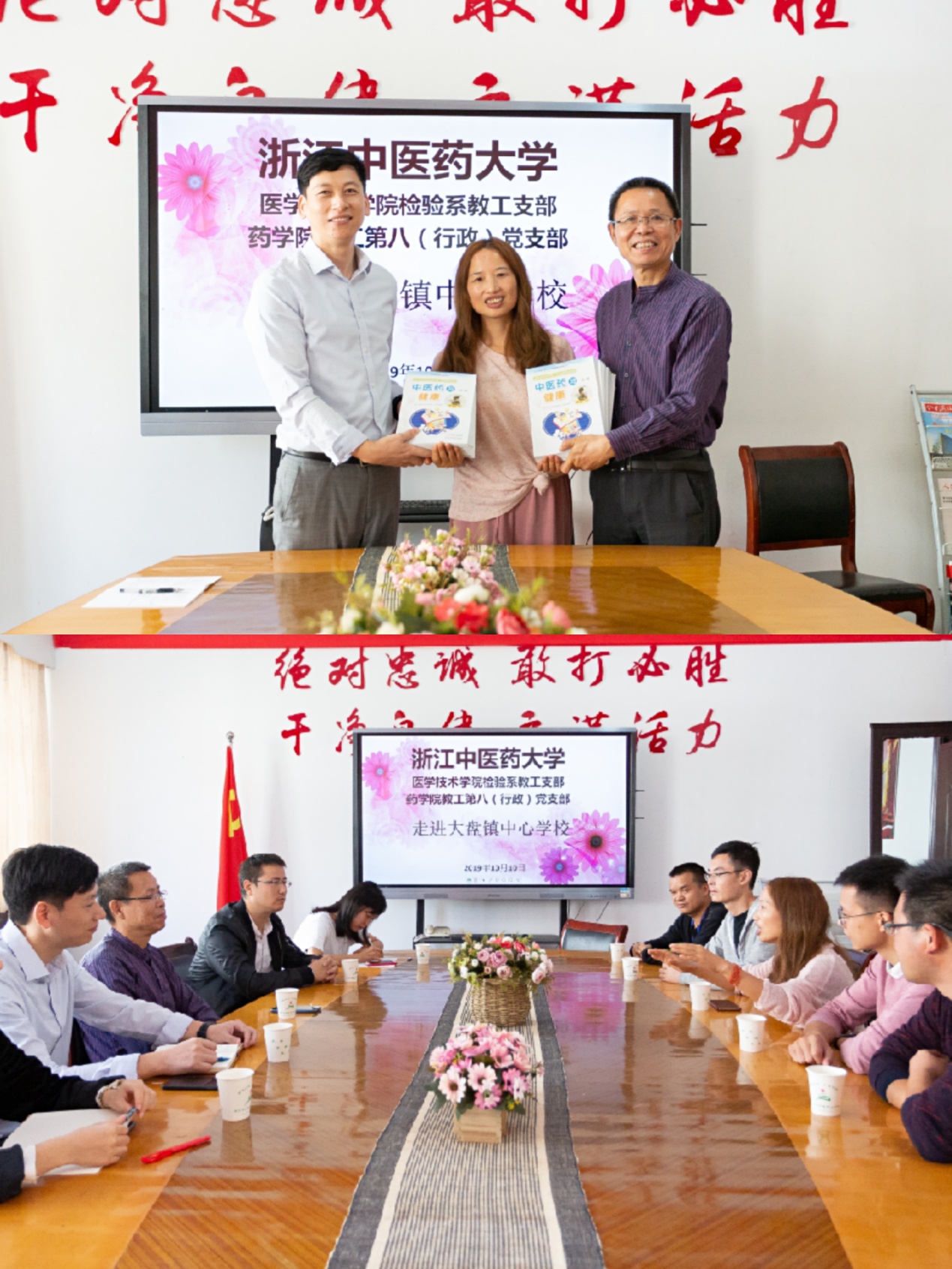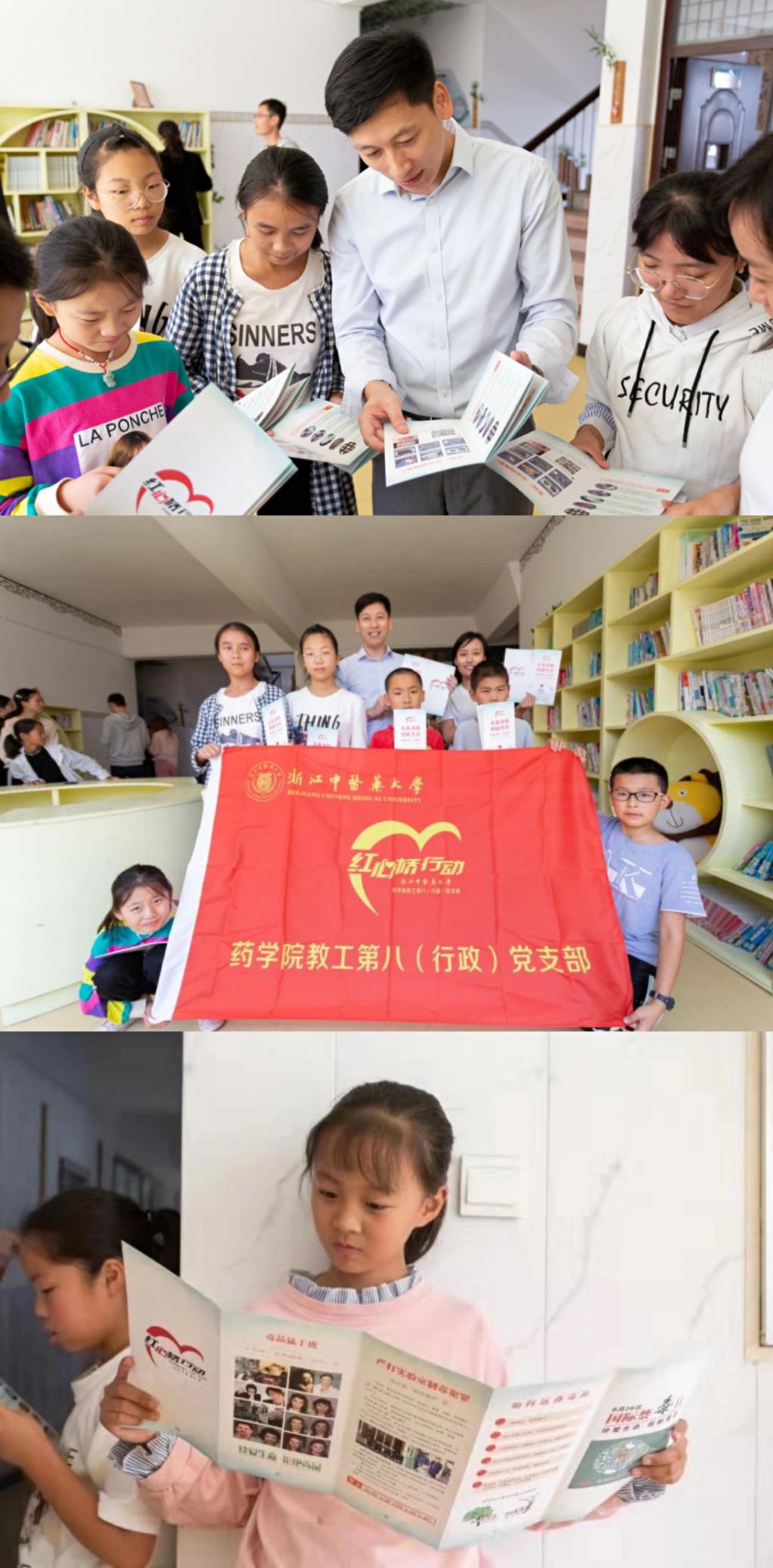 捐赠仪式上,彭建华和胡一平为该校员工送上《中医药与健康》等书籍。胡一平向大家介绍了由永利3044集团官网教工第八党支部发起的“红心桥微心愿”关爱困难群体、传递大温暖、传播正能量、扶贫与扶志结合的理念和宗旨。彭建华表示,浙江中医药大学两个教工党支部将与大盘中心校组织开展“红心桥微心愿”志愿活动,届时将为百名学子圆梦!