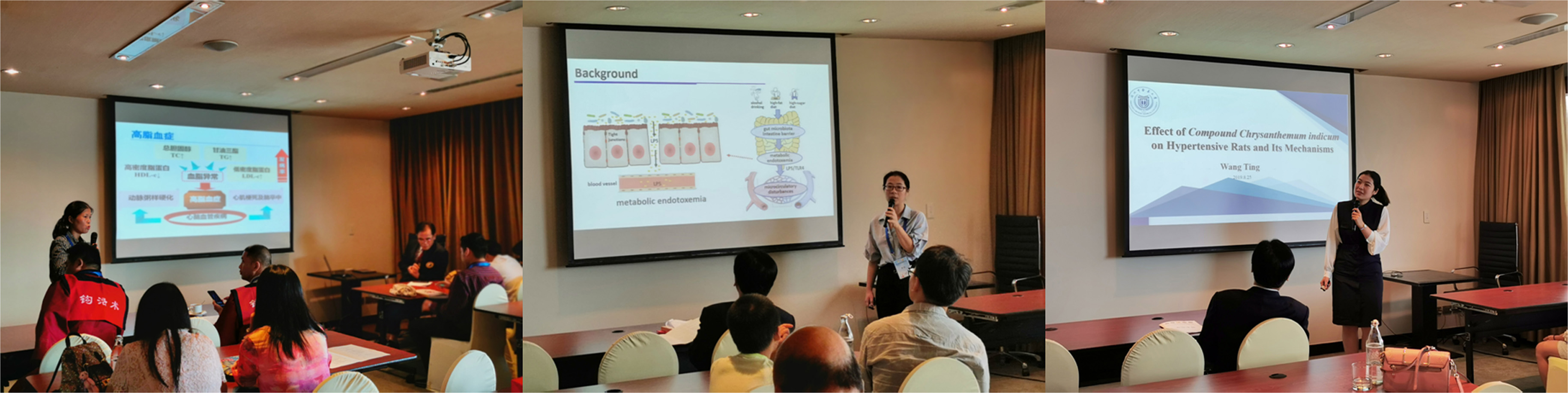 大会设10个分会场,进行中医药学术报告和中医临床技能演示。团队投稿会议论文4篇,公司俞静静、苏洁老师及博士生王婷,分别在第七和八分会场做中药抗高血压及相关疾病研究的演讲报告,研究内容源自国家自然基金项目等。