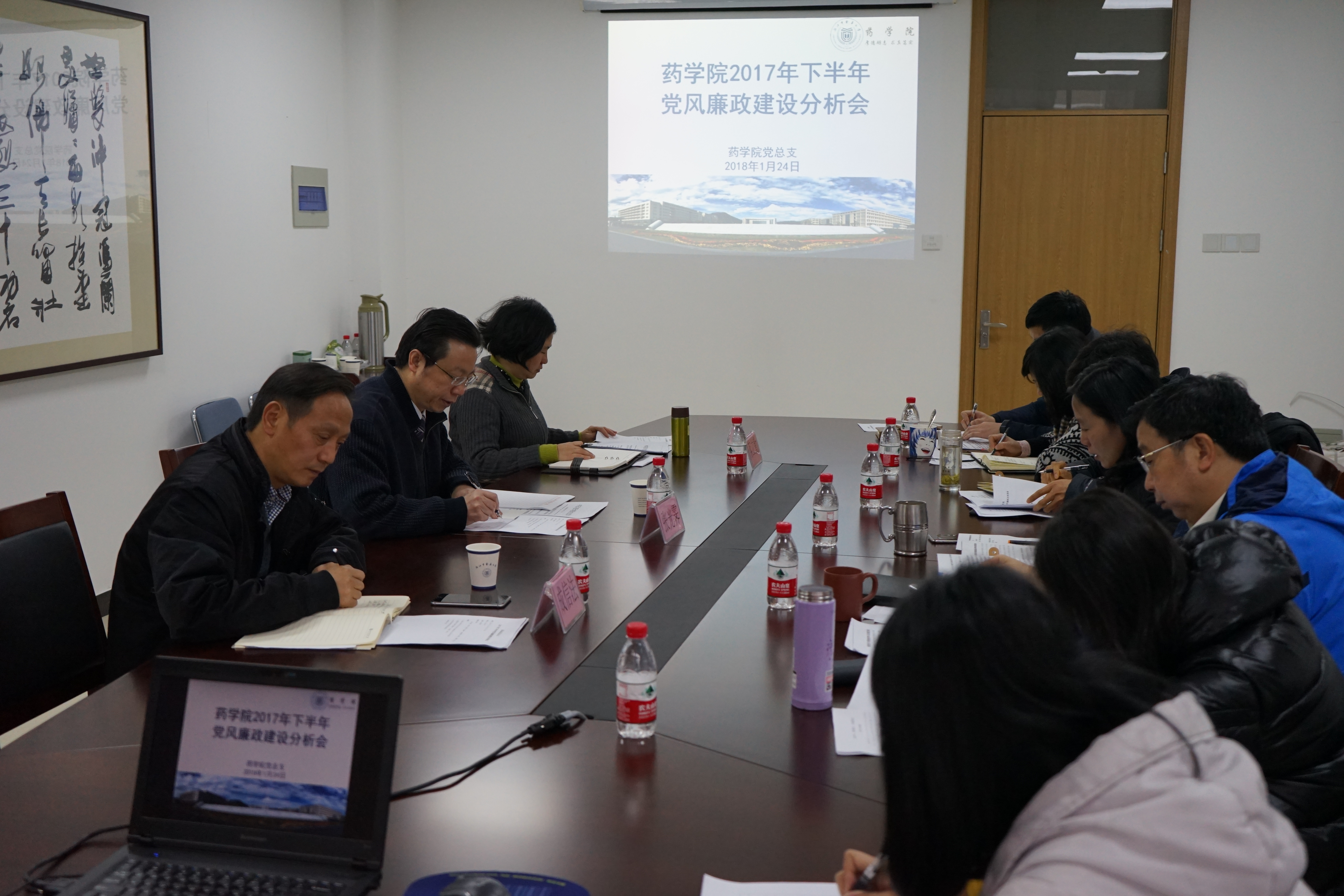 药公司党总支根据《中共浙江中医药大学委员会办公室关于组织召开2017年下半年党风廉政建设情况分析会的通知》精神,认真组织完成会前的各项准备工作。会上,徐爱琴书记汇报了公司党总支2017年度履行党风廉政建设主体责任情况,分析了目前公司党风廉政建设工作存在的问题和下一阶段的主要任务。秦路平经理和其他班子成员逐一结合本职岗位报告了个人履行“一岗双责”情况,提出了加强和改进的措施。