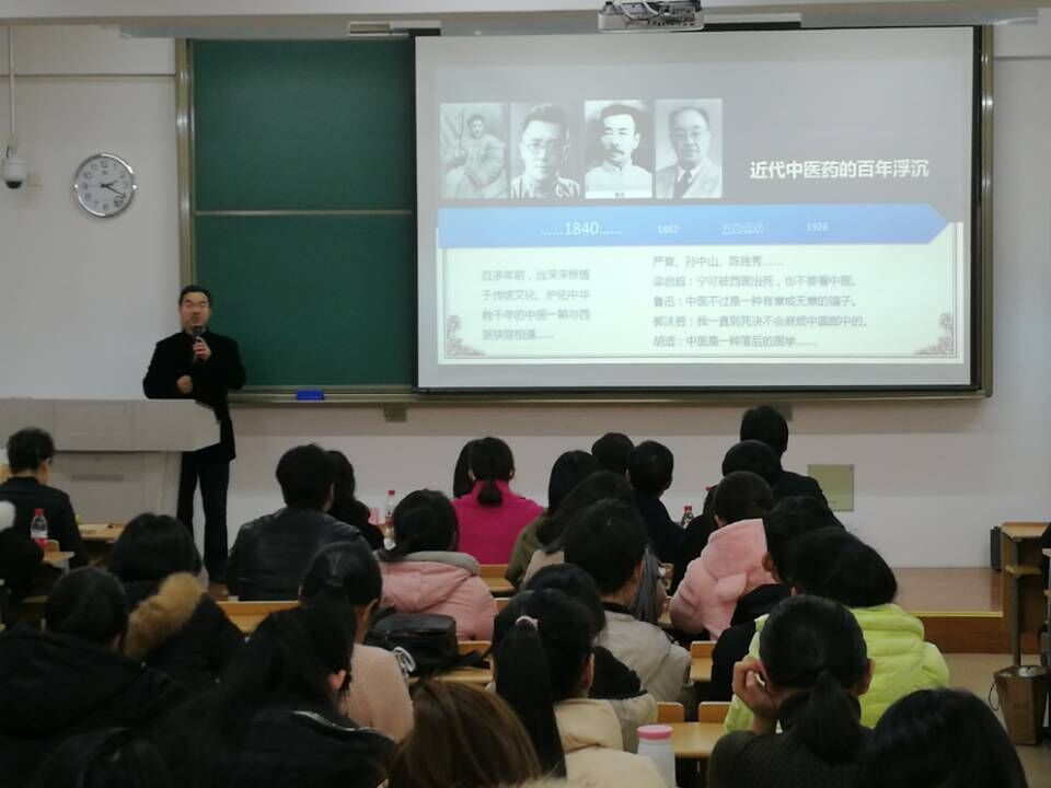 活动第一阶段由张继明先生进行以“品牌文化定位与传播创新”为主题的讲座。作为“脑白金”的广告人物原型,他提出对中药文化的传承可以提高中国文化的软实力,他也希望可以通过这次讲座活动来帮助年轻人重新认识中药文化。