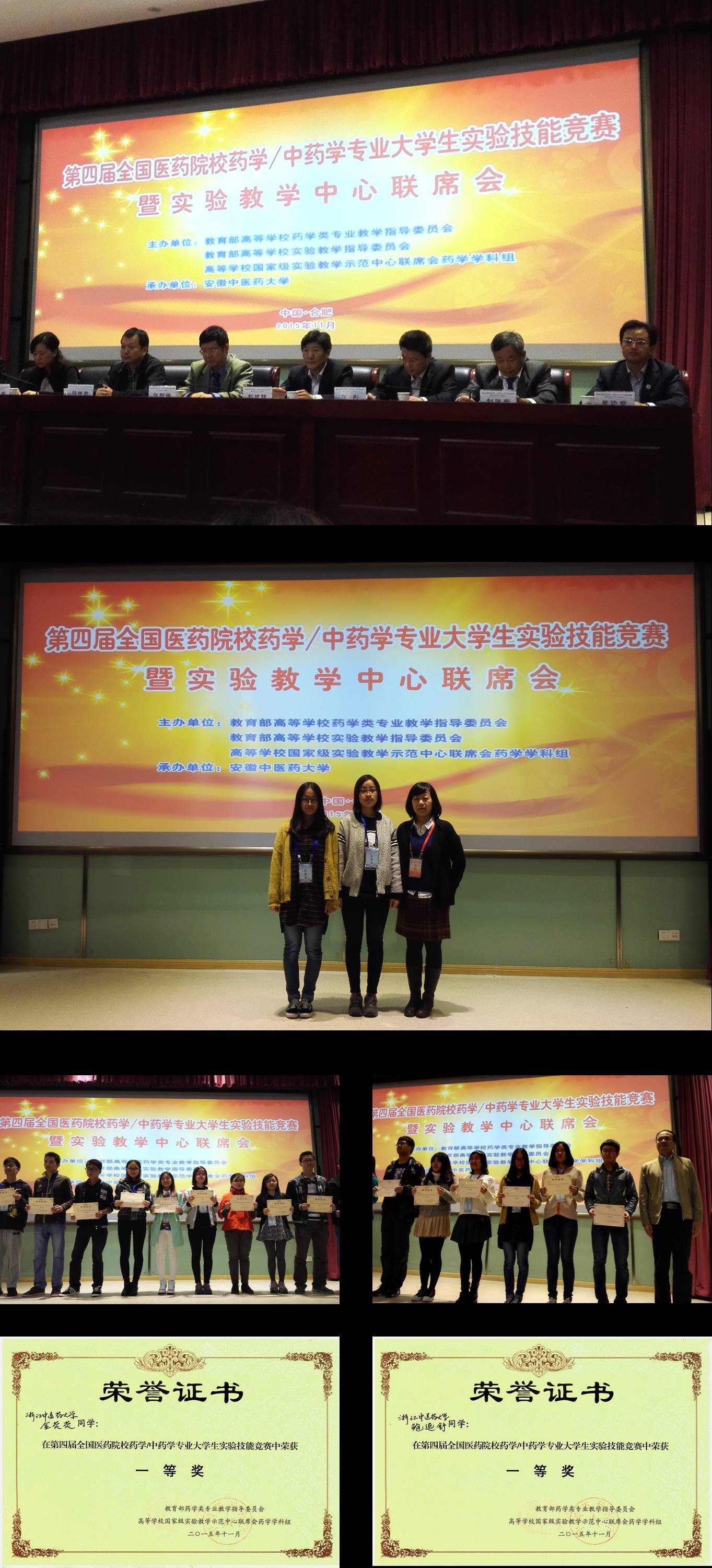 11月5日-11月7日,由教育部高等公司药学类专业教学指导委员会、教育部高等公司实验教学指导委员会和高等公司国家级实验教学示范中心联席会药学学科组主办,安徽中医药大学承办的第四届全国医药院校药学/中药学专业老员工实验技能竞赛暨实验教学中心联席会在安徽中医药大学举行。公司永利3044集团官网中药学专业2012级金荧荧和鲍逸舒两名员工在永利3044集团官网黄真副经理带领下参赛,经过激烈角逐,获得了2项个人一等奖的佳绩。