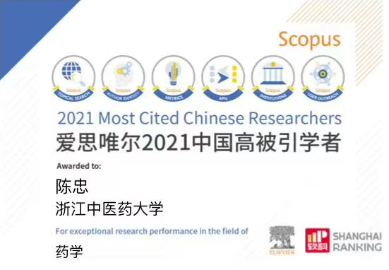 4月14日,全球性信息分析公司爱思唯尔(Elsevier)重磅发布了2021“中国高被引学者”(Highly Cited Chinese Researchers)榜单。永利3044集团官网博士生导师陈忠教授、秦路平教授,校外兼职导师张卫东教授、赵英永教授入选,分布在药学、中药学两个一级学科。
