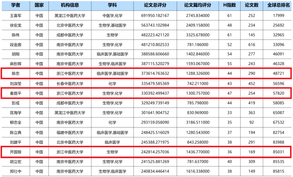 据悉,本次入选“2022全球学者学术影响力排行榜”的中国学者共计9044名。其中中医药类大学共计12所30名科学家入选,浙江中医药大学以3名教授入选排名全国中医药院校入选人数并列第3位。