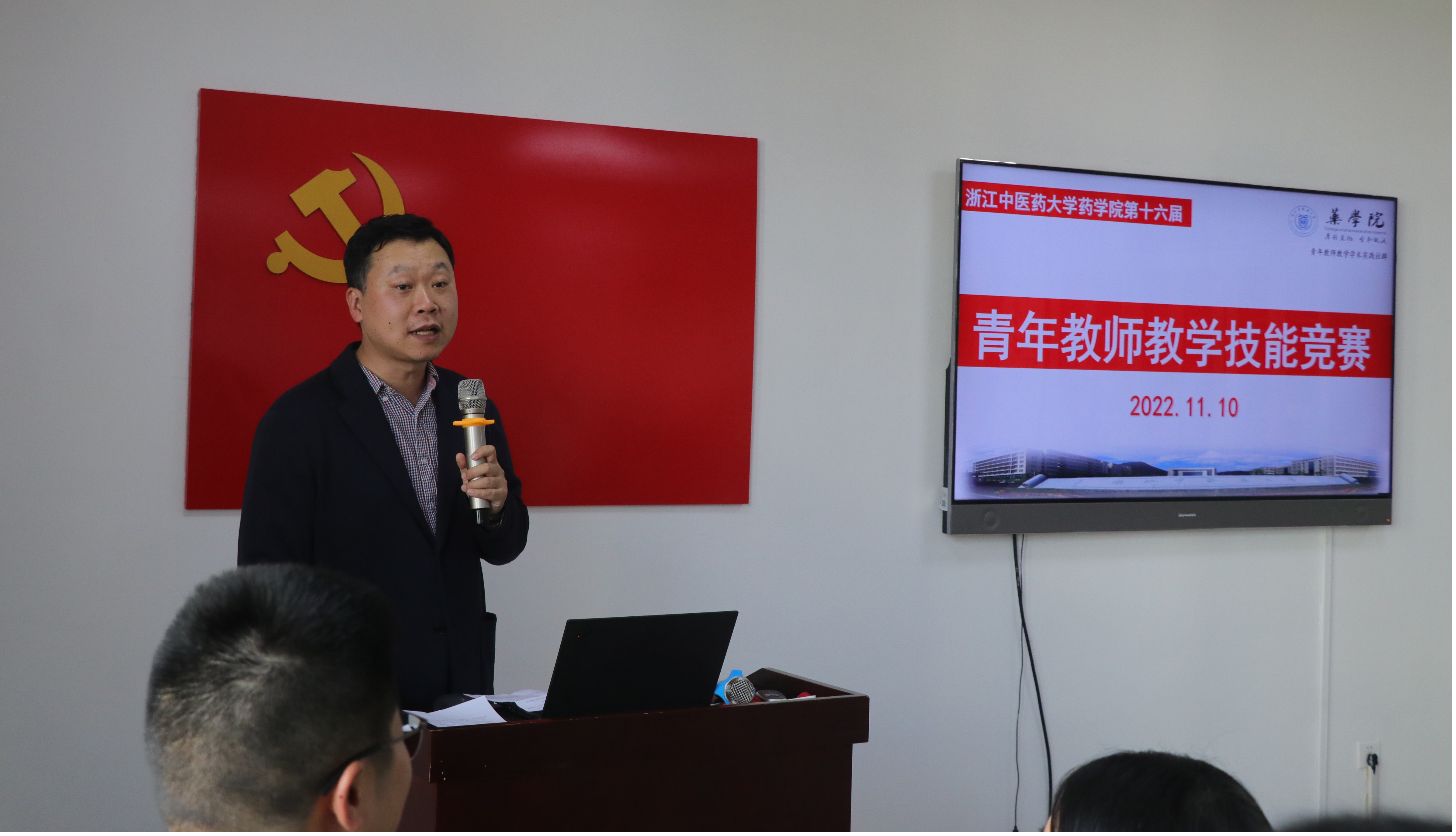 说课结束,邵加教授和严云良教授分别做精彩点评。邵加教授结合参赛教师的表现,指出选手在说课过程中的一些共性问题,并就每位选手的具体情况逐一进行点评。严云良教授分享了青年教师参加省级教学技能比赛的实际案例和宝贵的经验。此外,谷经理还邀请了药物分析教研室主任寿旦教授分享对本次比赛的感受,寿教授用“学习”、“欣喜”、“专业”三个词做了高度概括。