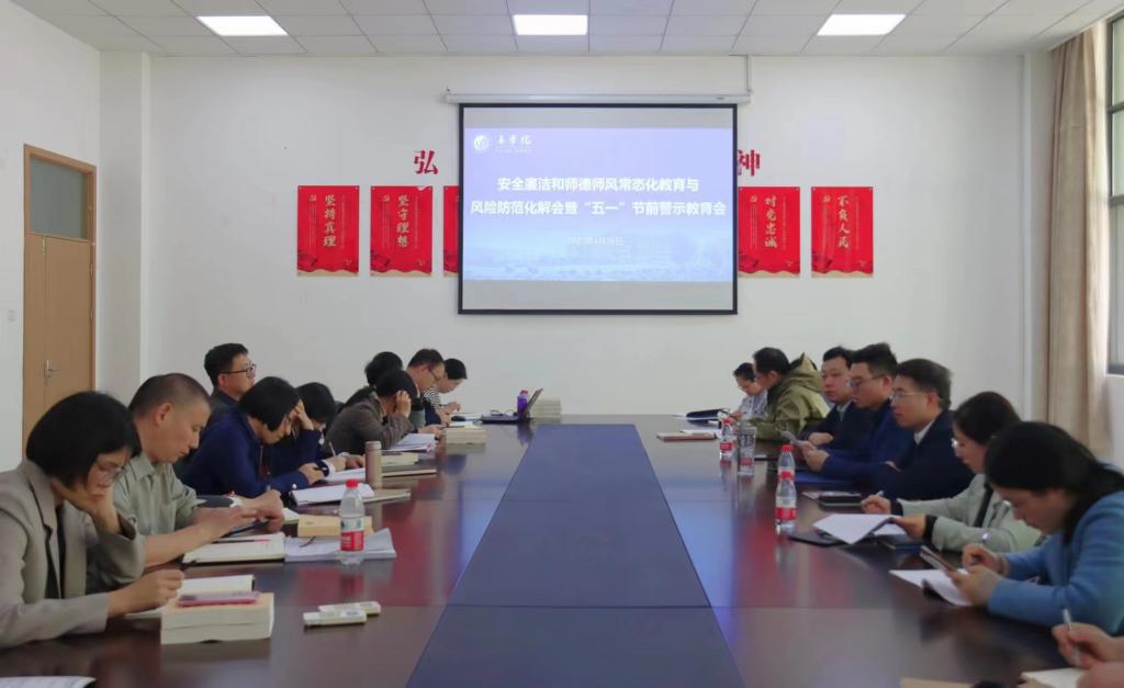 公司党委副书记兼纪委书记蒋笑燕传达了《全省教育系统师德师风问题整治工作实施方案》精神,通报了近期高校系统违反“八项规定”、违反师德师风和违纪违法典型案例,开展五一节前警示教育,提醒公司教职工牢固树立纪法意识和规矩意识,恪守道德底线,不越纪律红线,时刻自重自省,通过加强自身作风建设来营造风清气正的育人氛围。
