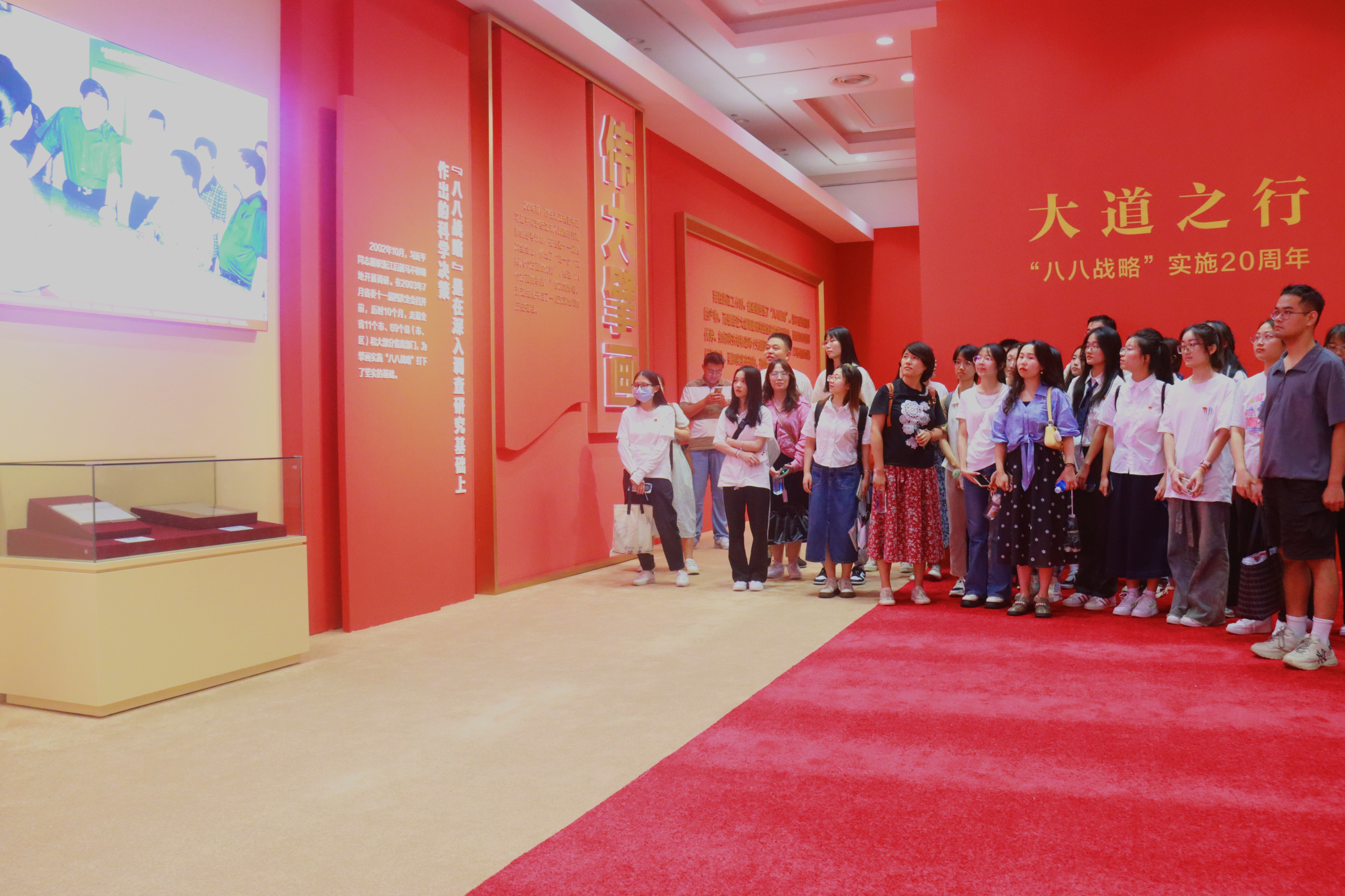 为进一步引导师生感悟“八八战略”的实践伟力,了解之江大地20年来发生的精彩蝶变,9月27日下午,药公司党委组织50余名党员师生代表赴浙江展览馆开展现场教学,参观大道之行——“八八战略”实施20周年大型主题展览。