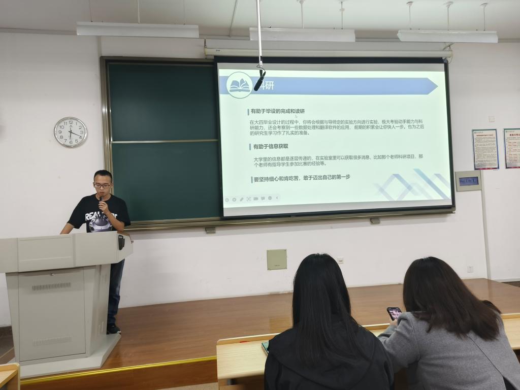 五位学姐学长就专业发展前景、自身学习心得以及如何平衡学习与工作等方面向同学们们分享了自己的经验,并对学弟学妹们的提问进行了耐心的回答。