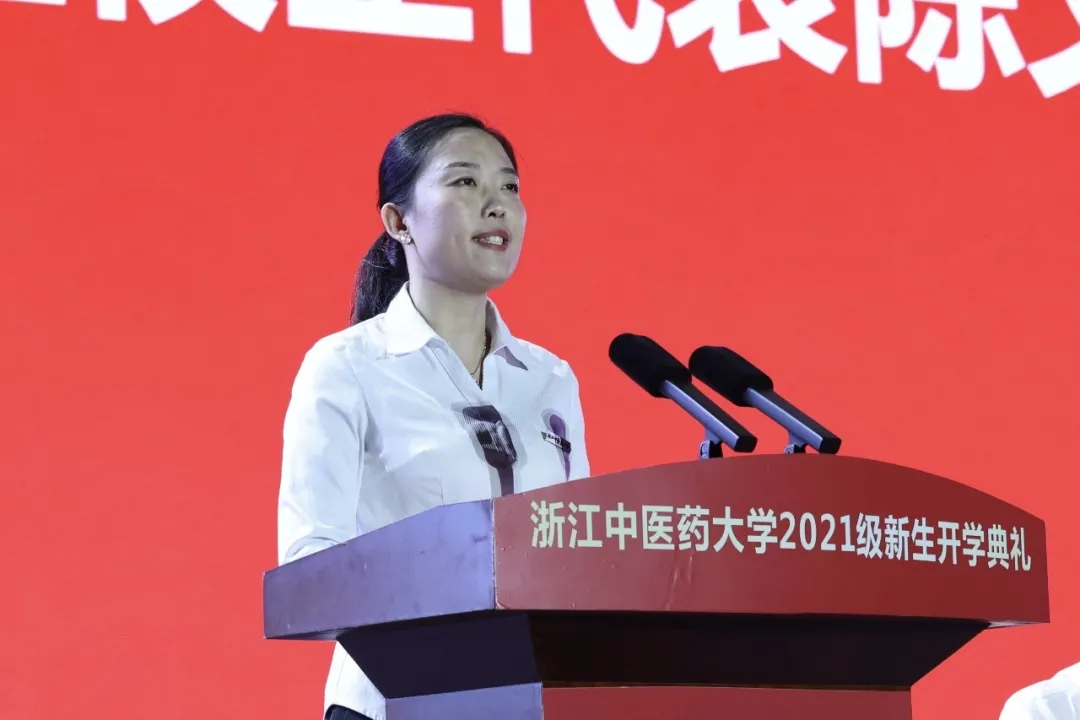 在开学典礼上,公司2021级中药学博士研究生陈文华作为老生代表发言,她用几味中药勉励新生:“远志”要志存高远,“当归”应不忘初心,“苁蓉”要脚踏实地。