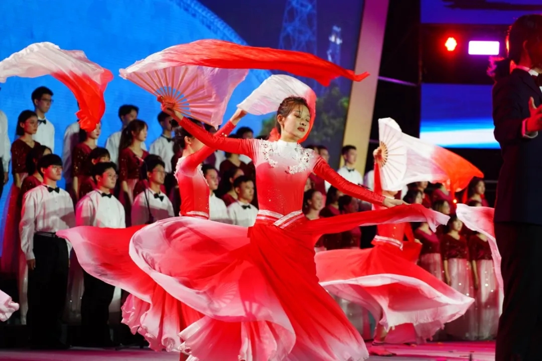 在歌舞《新的天地》中,身着红色长裙,手持红色长扇的舞者,正是来自公司雅韵艺社舞队的同学们。据悉他们仅用短短一个星期的时间就完成了所有舞蹈的训练,可想这背后付出了多少努力。红色扇子在她们手中翩翩起舞,伴随着激情澎湃的歌曲,在奋力接力的时代中,展示新时代青年的毅力与自信。