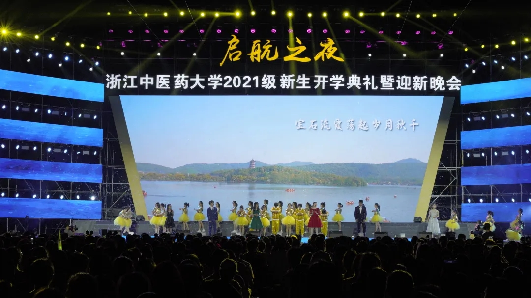 9月25日晚,“启航之夜”浙江中医药大学2021级新生开学典礼暨迎新晚会在公司富春校区的操场上隆重举行。全体校领导、教师代表和2021级新生共5000余人一同观看了演出。