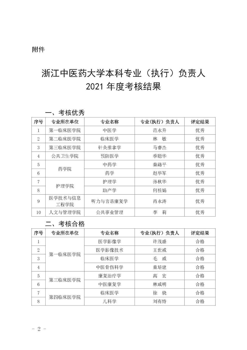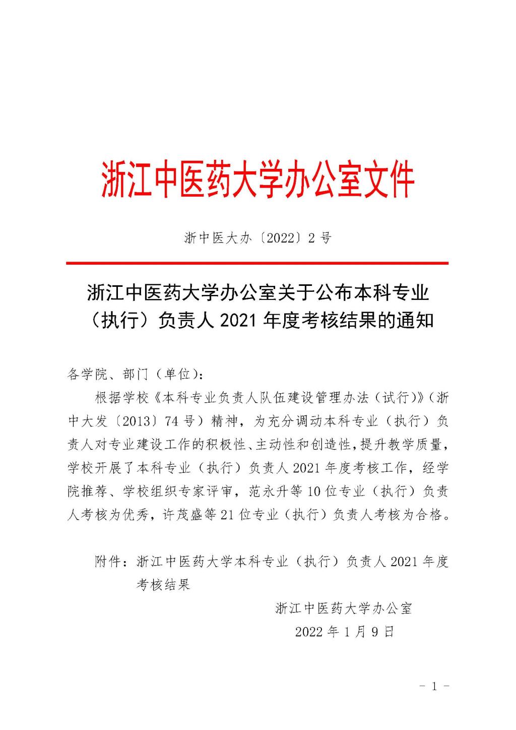 关于公布本科专业(执行)负责人2021年度考核结果的通知