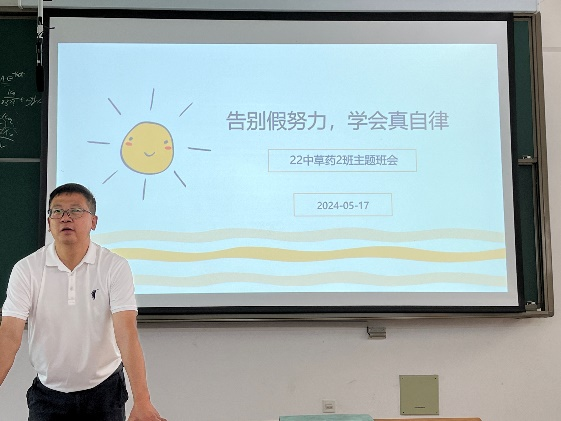 2024年5月17日,2022级中草药栽培与鉴定2班“告别假努力,学会真自律”主题班会在教学楼B103教室顺利召开。