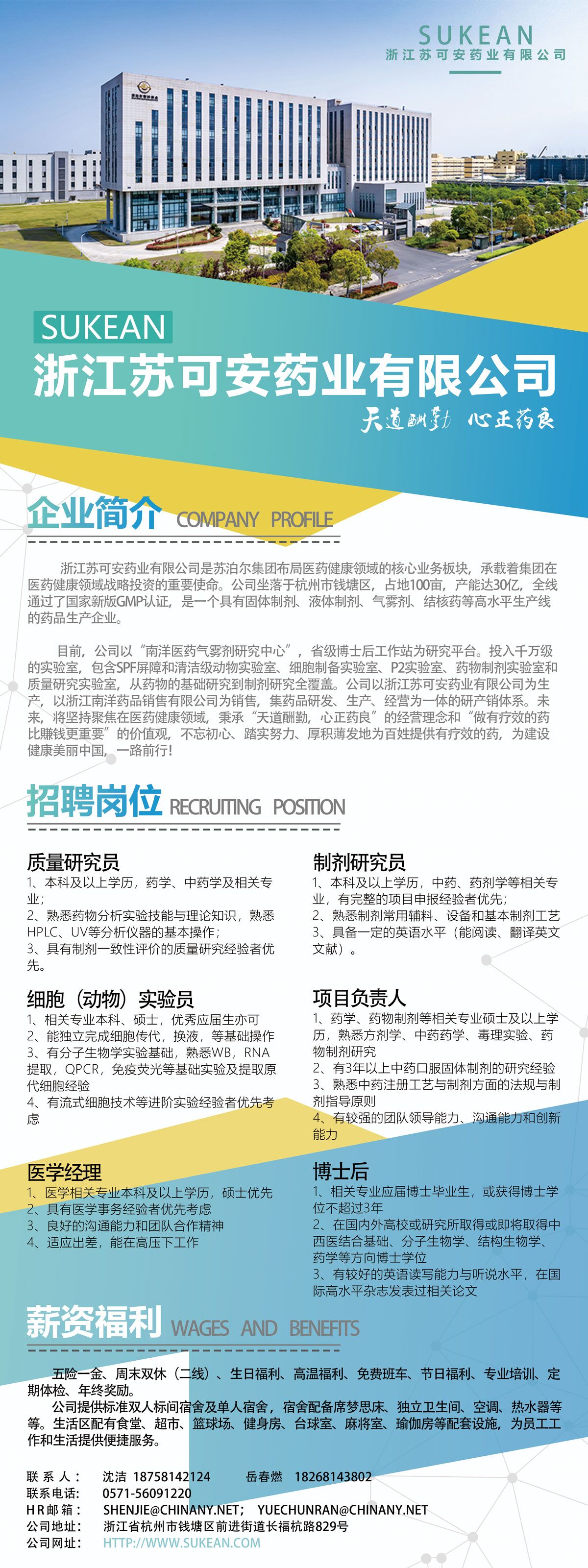 浙江苏可安药业有限公司招聘