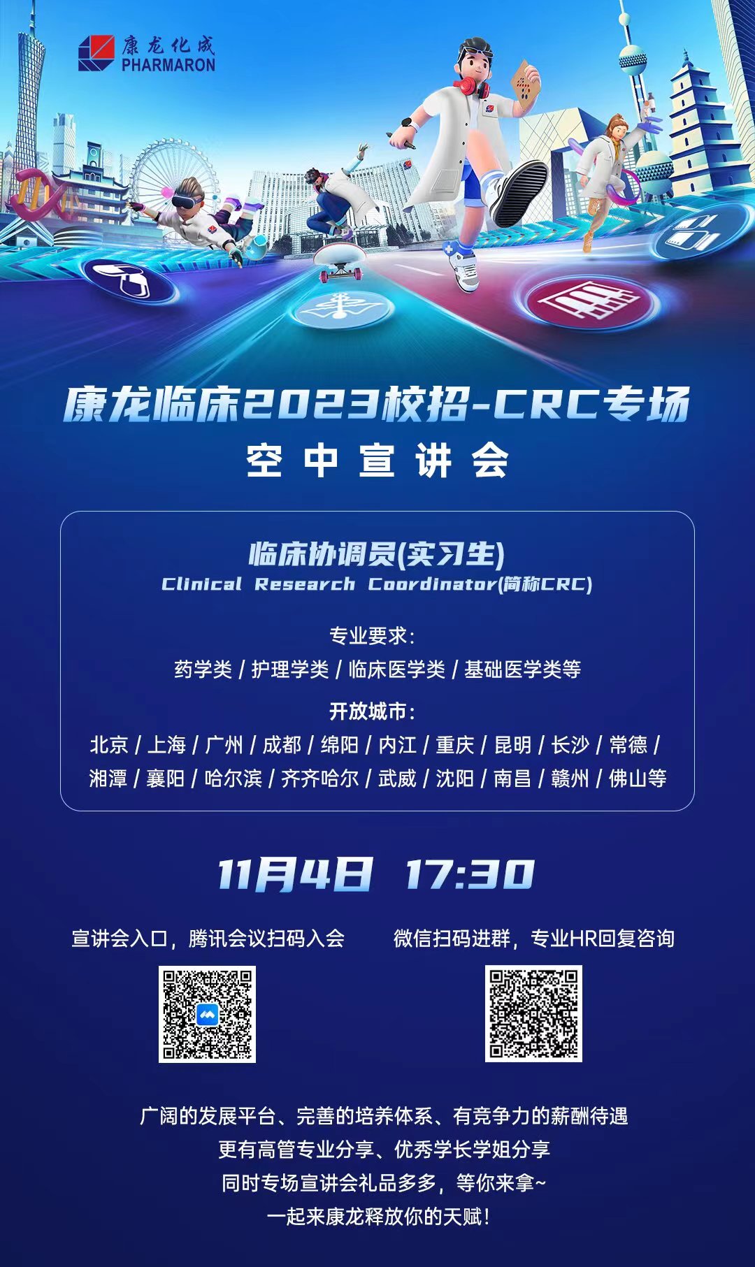 康龙化成2023校招-CRC专场-11月4日空中宣讲会