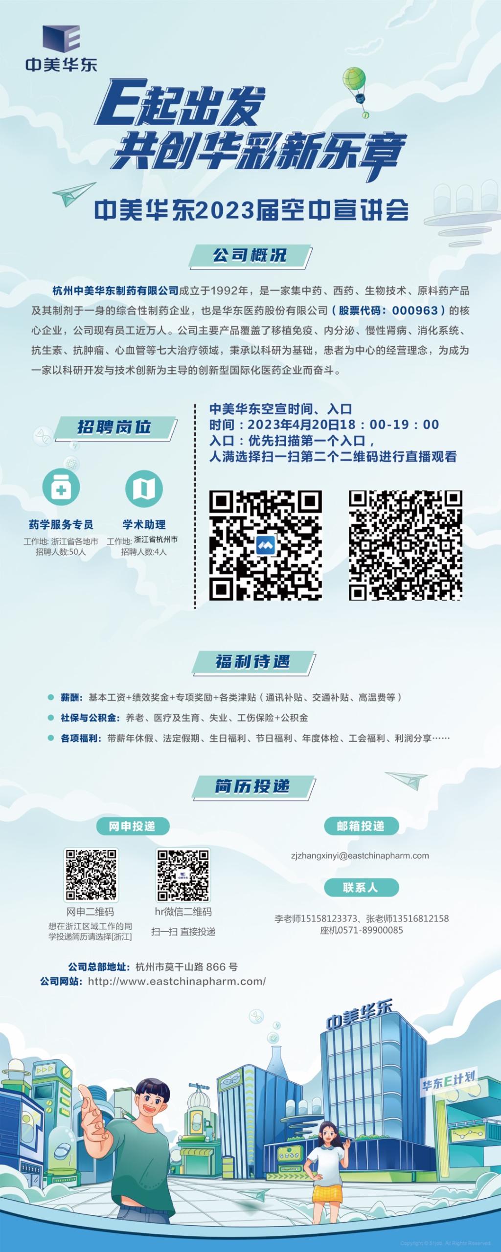 杭州中美华东制药有限公司2023届校园招聘空中宣讲会,欢迎所有同学前来参加!🏻