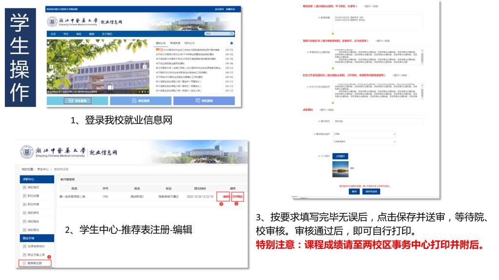 ②成绩单不在推荐表内显现,同学们可自行去两校区事务中心机子打印附后;