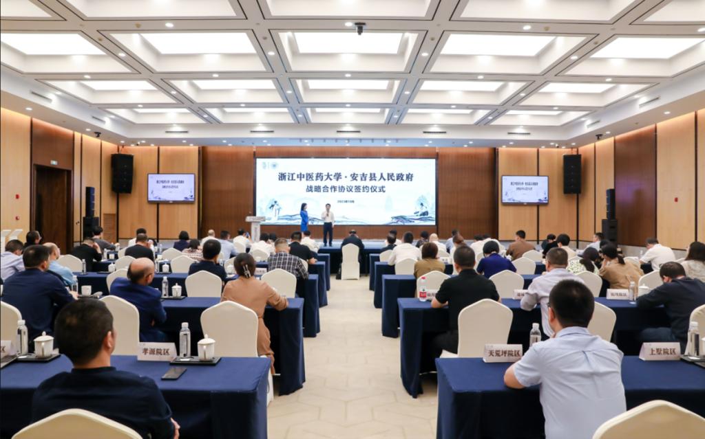 药公司党委书记谢军介绍,三方联合成立的“党建共同体”是浙江中医药大学和安吉县人民政府战略合作的一个重要载体,是校地党建联建模式的探索与创新。三方将坚持党建引领,以“绿色、健康、共富”为职责使命,以“一体两翼三融合”为建设路径,来推进党建联建品牌目标的实现。“一体”就是指由永利3044集团官网牵头承建的浙江中医药大学“两山科创服务中心”;“两翼”分别指三方共同建设产业发展服务平台,共同推进中医药科技创新项目研究,推动产学研一体化发展;“三融合”分别指融合基层党组织建设,融合以中医药为特色的健康与文化宣教活动,融合卫生健康与医药行业人才的引进和培养。通过三方资源共享、优势互补、互帮联建,切实提升党建引领力、党员示范力、科技创新力、产业服务力和事业发展力,充分发挥党建凝聚人心、党建引领业务、党建促进发展的作用。