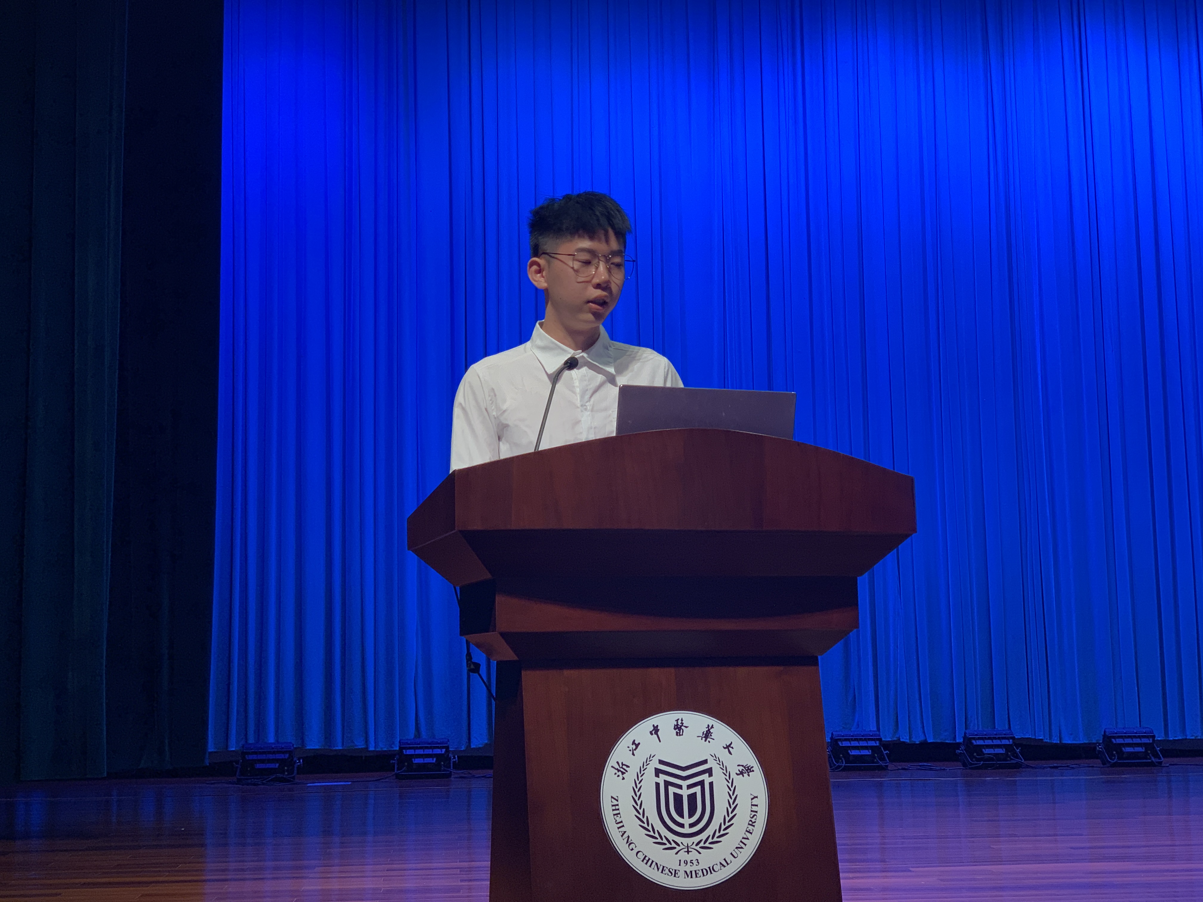2019级中药学1班新生郑浩同学作为新生代表发言。他向大家讲述了