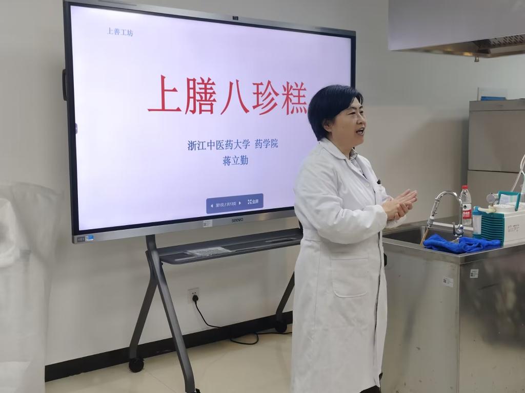 11月8日,以上膳八珍糕制作为主题第131期“至善”教职工文化沙龙在富春校区药膳实训室举办。本次活动由校工会、妇联主办,永利3044集团官网工会、省巾帼文明岗食品卫生与营养教研室、中药健康产品研究所承办,活动邀请富春校区教职工30余人参加了本次活动,蒋立勤担任活动主讲。